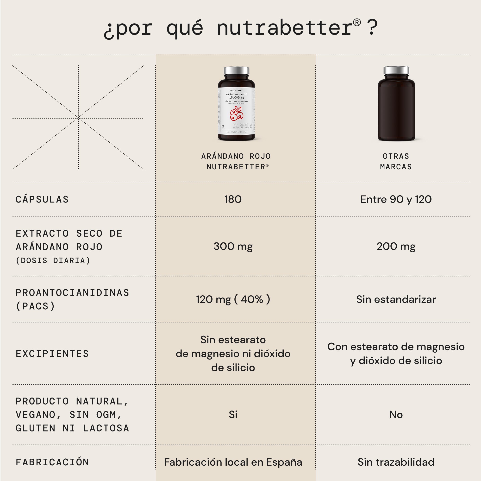 Cada dosis diaria contiene 300 mg de extracto 50:1, equivalente a 15.000 mg de arándano rojo en polvo, con 120 mg de PACs. Un nivel superior para máxima eficacia.
