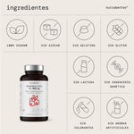 Fórmula limpia, sin gluten ni lactosa, apta para veganos. Libre de estearato de magnesio y conservantes.