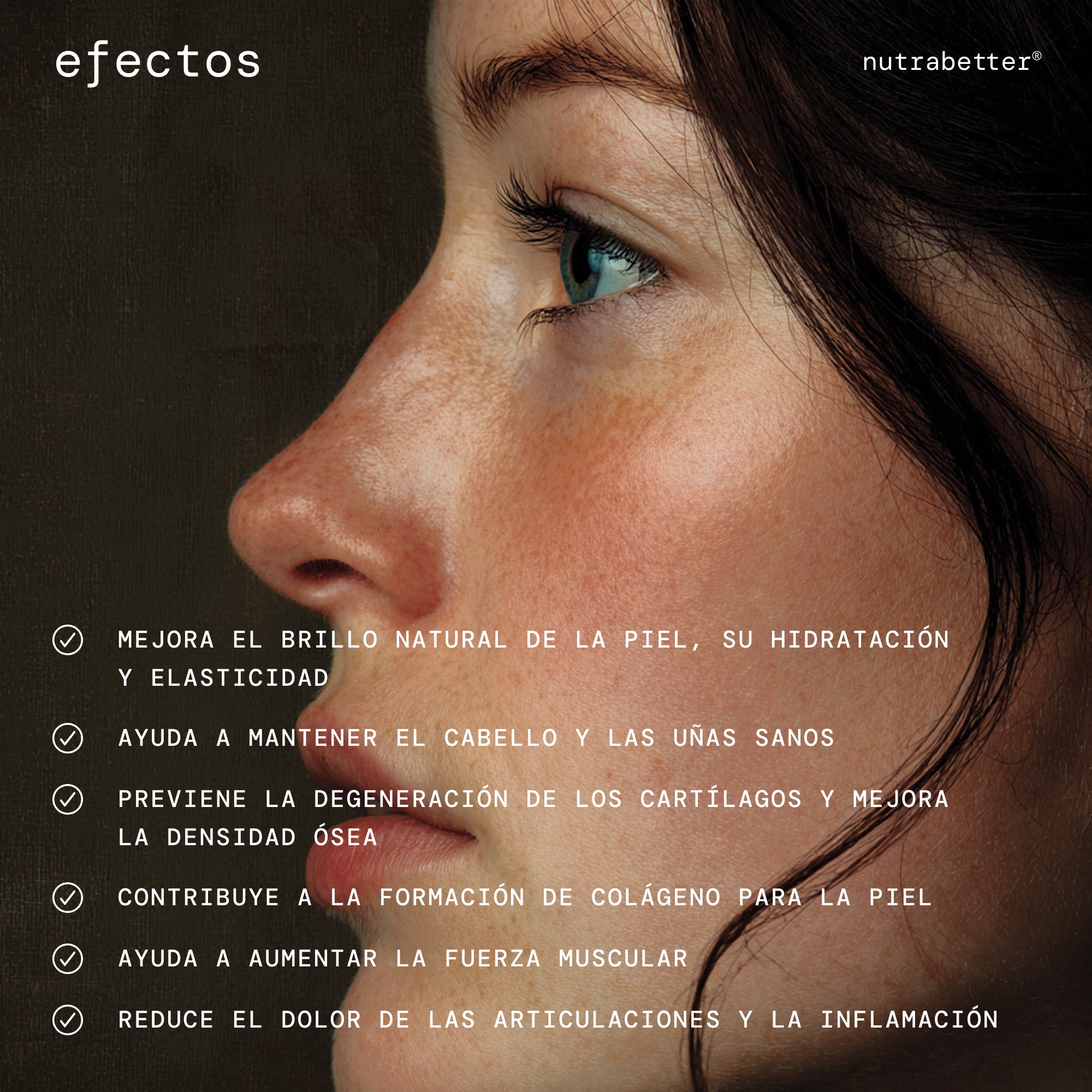 Colágeno Verisol con estudios clínicos que respaldan su eficacia en mejorar la hidratación y elasticidad de la piel, protección de las articulaciones y en fortalecer el cabello y uñas.