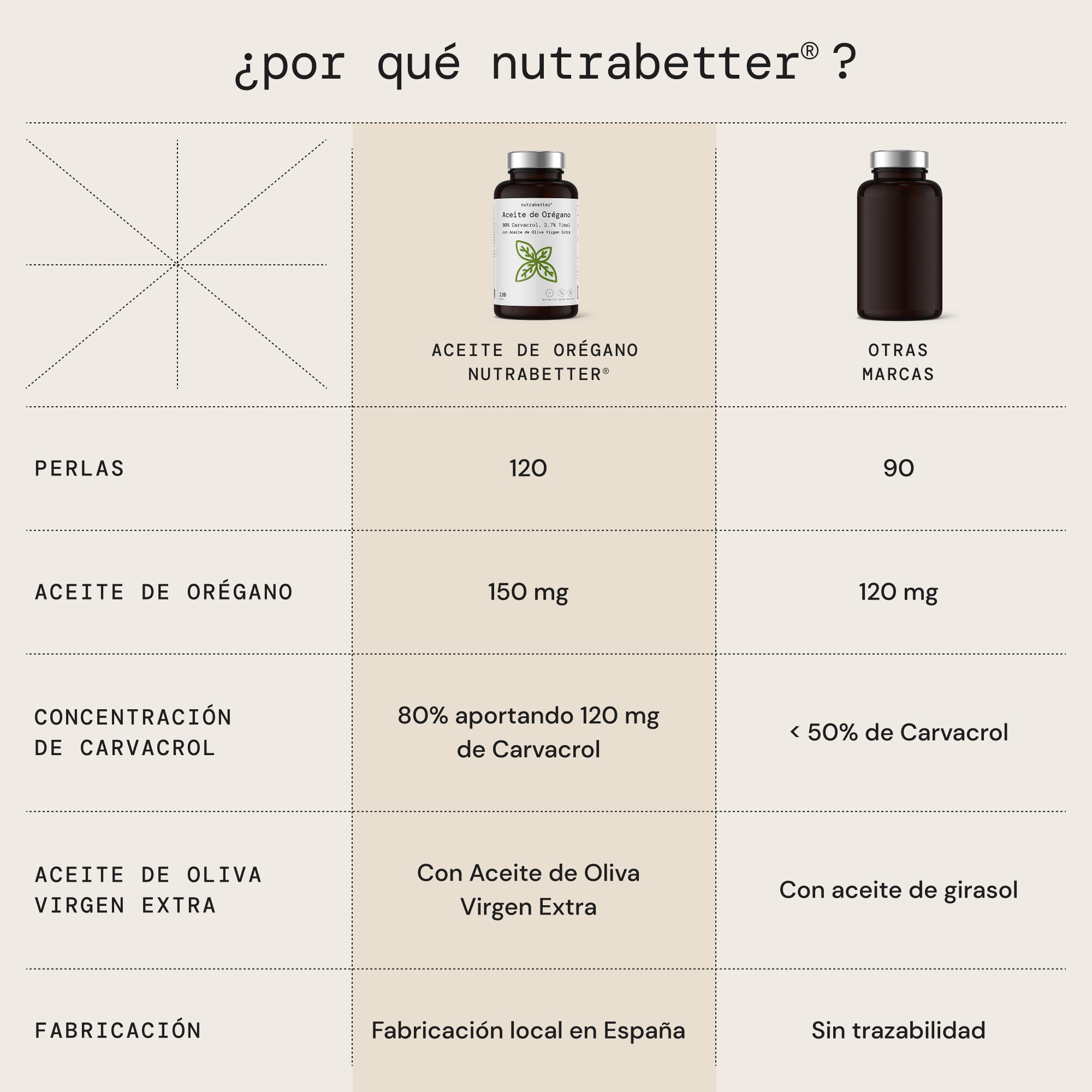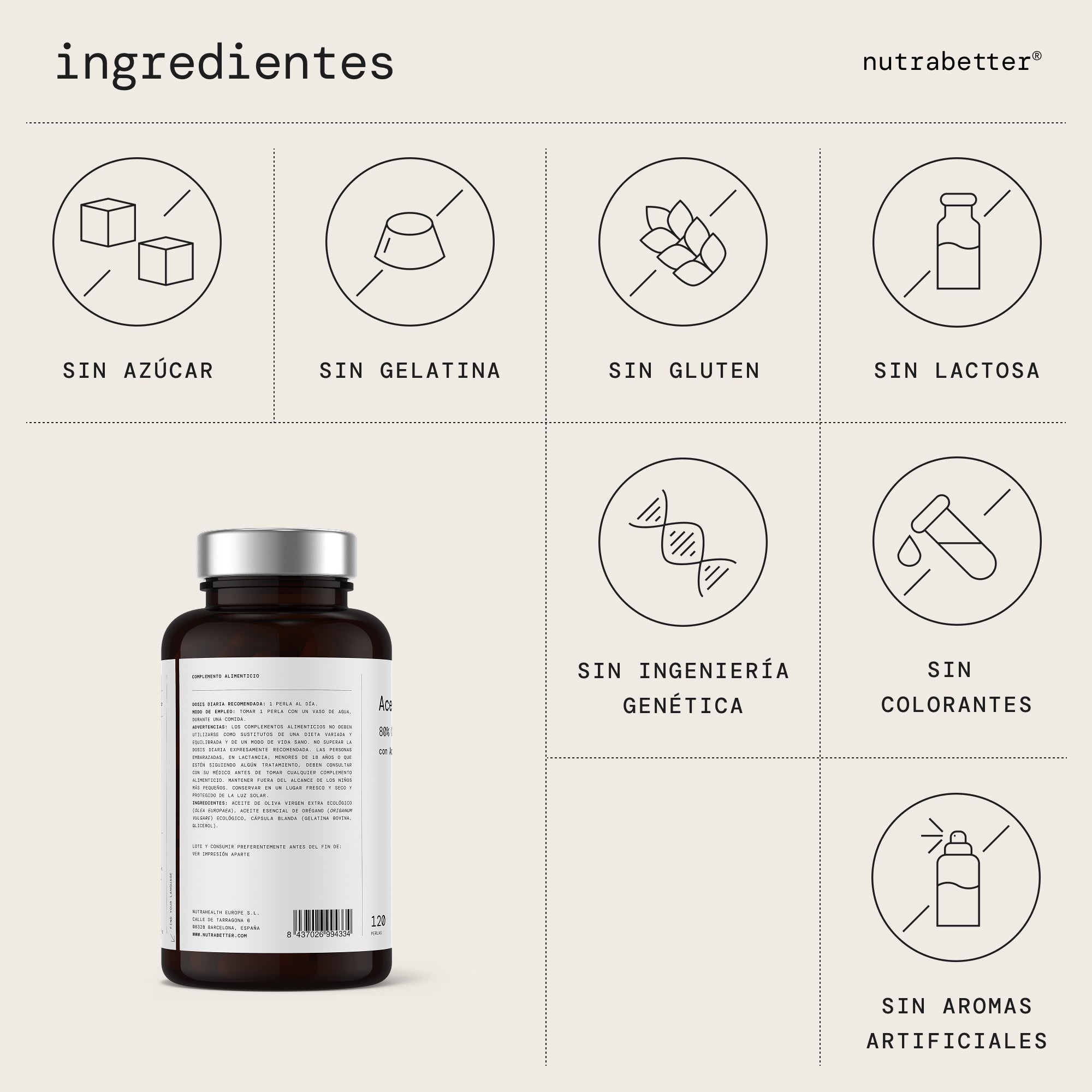 Aceite de orégano cápsulas elaborado únicamente con aceite esencial de orégano, aceite de oliva virgen extra y cápsula blanda, sin estearato de magnesio, sin dióxido de silicio, sin edulcorantes ni aromatizantes artificiales.