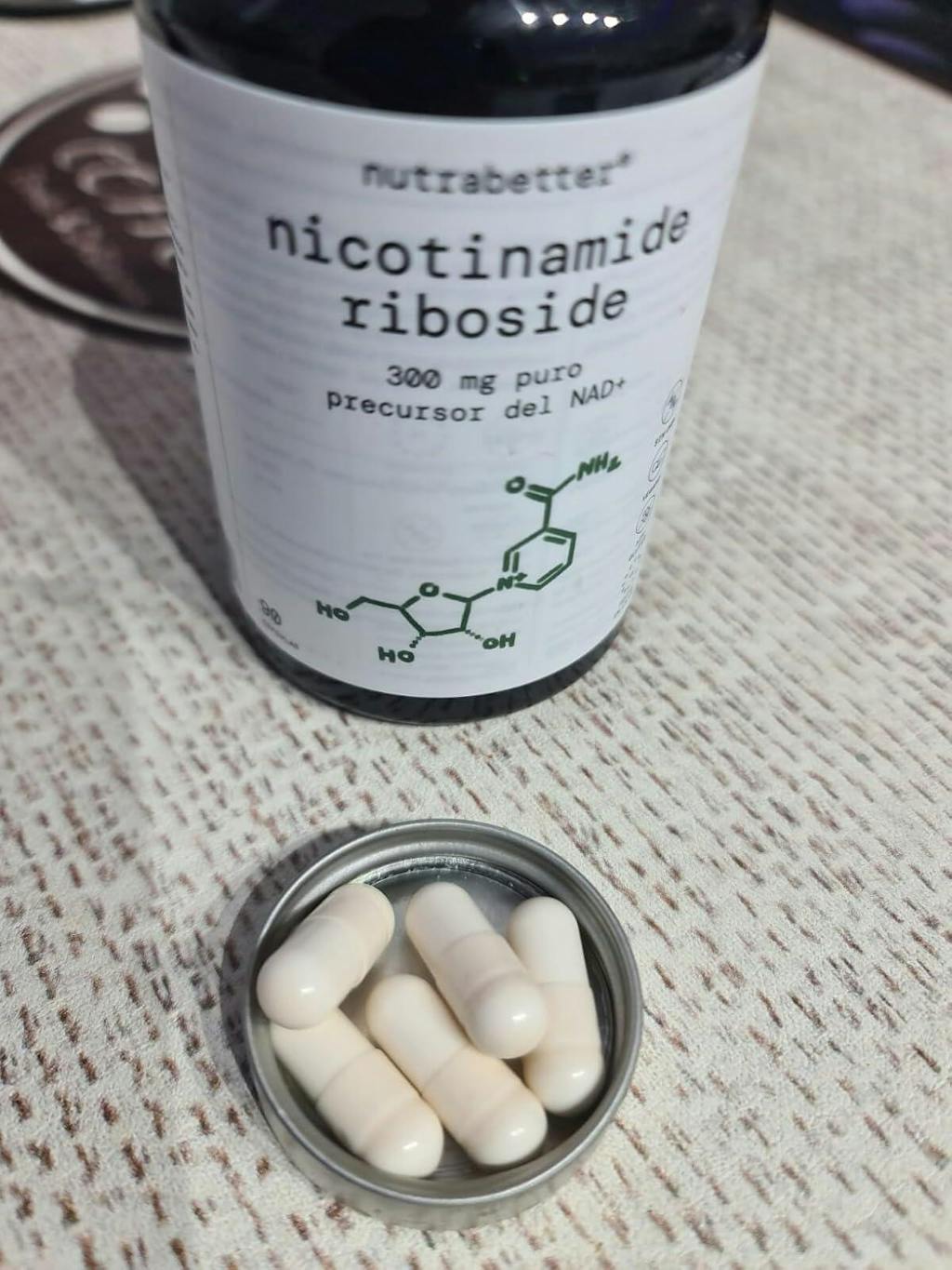 Nuestra fórmula aporta 300 mg de cloruro de nicotinamida ribósido, una forma activa de vitamina B3, conocida por impulsar los niveles de NAD+ en las células, apoyando el metabolismo energético y promoviendo una vitalidad óptima.